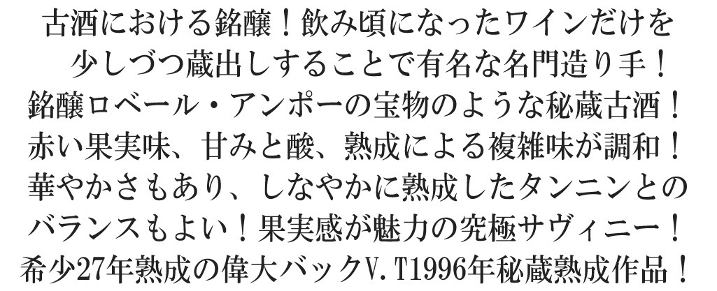 ■商品名 | サヴィニー レ ボーヌ ルージュ 1996 究極秘蔵蔵出し限定品 ドメーヌ ロベール アンポー元詰 AOCサヴィニー レ ボーヌ ルージュ 27年熟成 |