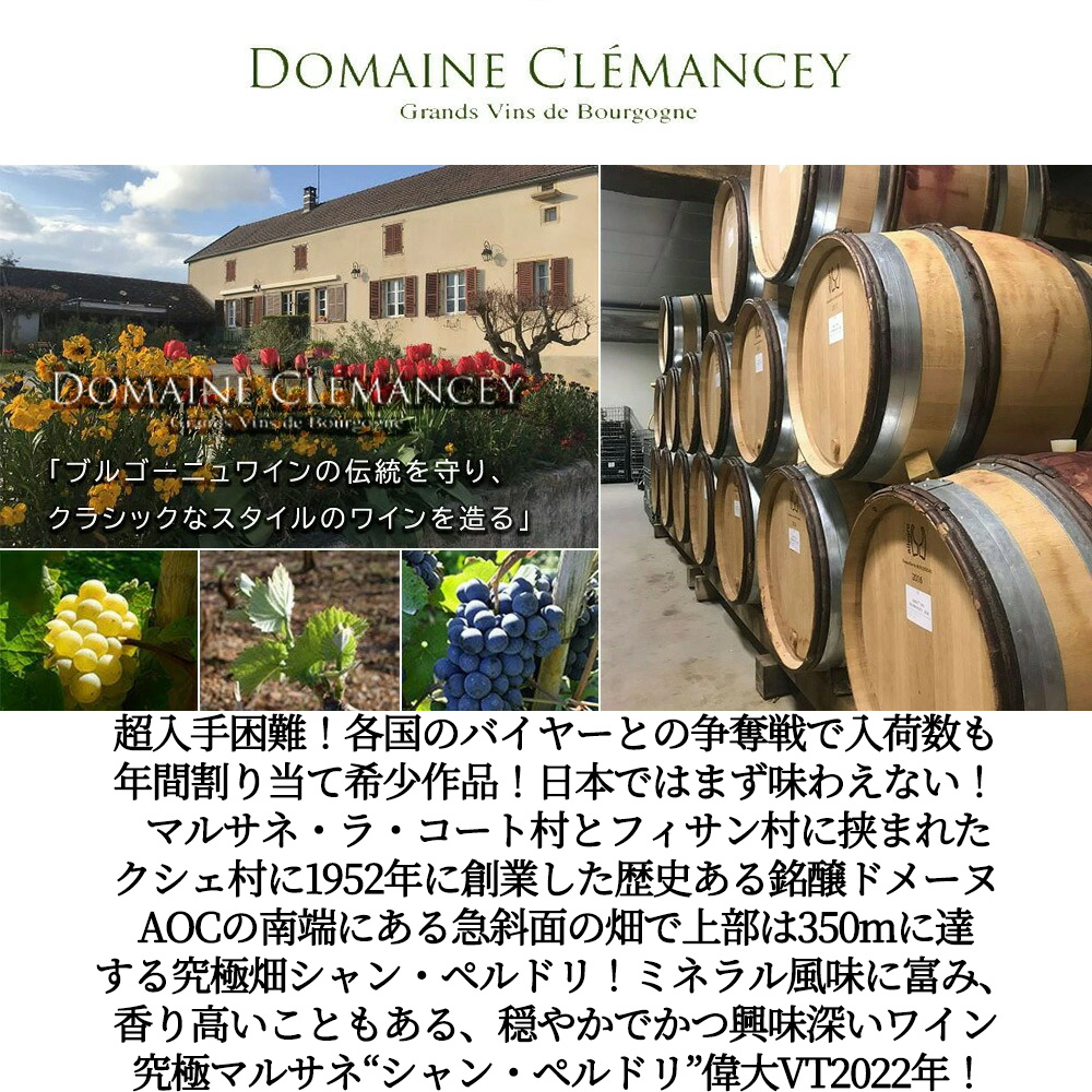 マルサネ シャン ペルドリ 2022 蔵出し限定品 ドメーヌ クレマンセイ元詰 AOCマルサネ ルージュ 正規品 MARSANNAY Champs Perdrix Rouge [2022] Domaine Clemancey