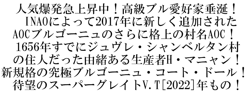 ブルゴーニュ コート ドール 2022 年 ドメーヌ アンリ マニャン元詰 AOCブルゴーニュ コート ドール