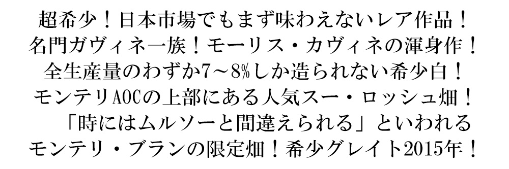 モンテリー レ スー ロッシュ ブラン 2015 蔵出し作品 ドメーヌ ガヴィネ ペール エ フィス元詰 オーク樽12ヶ月熟成 9年熟成作品
