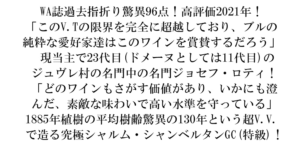 シャルム シャンベルタン グラン クリュ 特級 トレ ヴィエイユ ヴィーニュ 2021 蔵出し秘蔵品 ドメーヌ ジョセフ ロティ元詰 正規品のレビュー