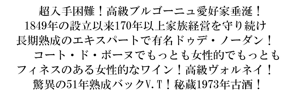 ヴォルネイ 1973 秘蔵限定セラー出し作品 ドゥデ ノーダン社 AOCヴォルネ 驚異の51年熟成作品<br>Volnay 1973 Doudet Naudin AOC Volnay