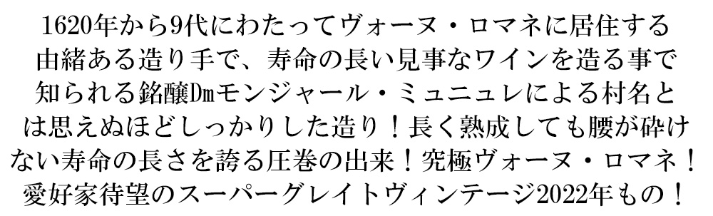 ヴォーヌ ロマネ 2022 ドメーヌ モンジャール ミュニュレ元詰 蔵出し品 AOCヴォーヌ ロマネ