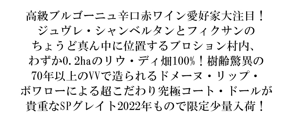 ブルゴーニュ コートドール リウ ディ ムティエ ルージュ 2022 蔵出し作品 ドメーヌ リップ ボワロー元詰 AOC ブロション村内のリウ ディ!<br>Bourgogne Cote d'Or Rouge 2021 Domaine Lippeのレビュー