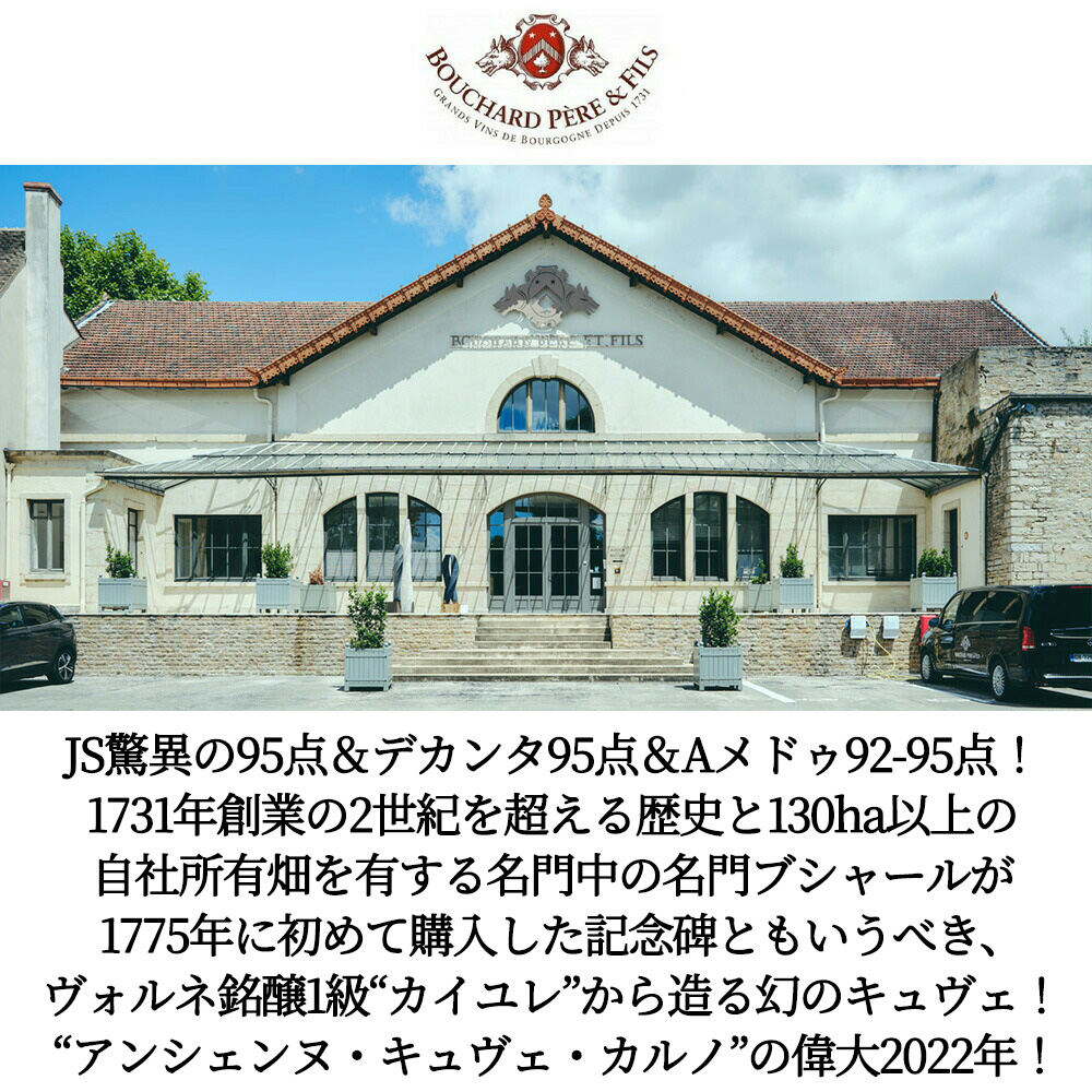 【商品名】ヴォルネ・プルミエ・クリュ・一級・カイユレ・アンシェンヌ・キュヴェ・カルノ[2022]年・蔵出し限定品・ドメーヌ・ブシャール・ペール・エ・フィス元詰・AOCヴォルネイ・プルミエ・クリュ・一級・正規品・ジェームス・サックリング驚異の95点&デカンタ95点&バーガウンド92-95点&ティム・アトキン94点【英名】Volnay 1er Cru Caillerets Ancienne Cuvee Carnot 2022 Domaine Bouchard Pere & Fils AOC Volnay 1er Cru