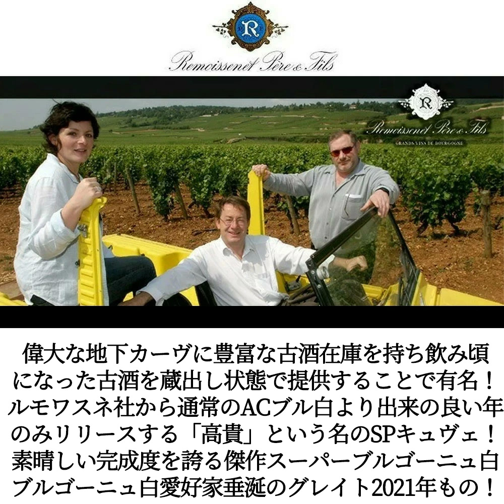 ブルゴーニュ ルノメ ブラン 2021 蔵出し品 ルモワスネ ペール エ フィス AOCブルゴーニュ シャルドネ 重厚ボトル 正規代理店輸入品 Bourgogne Renommee Blanc 2021 Remoissenet Pere & Fils