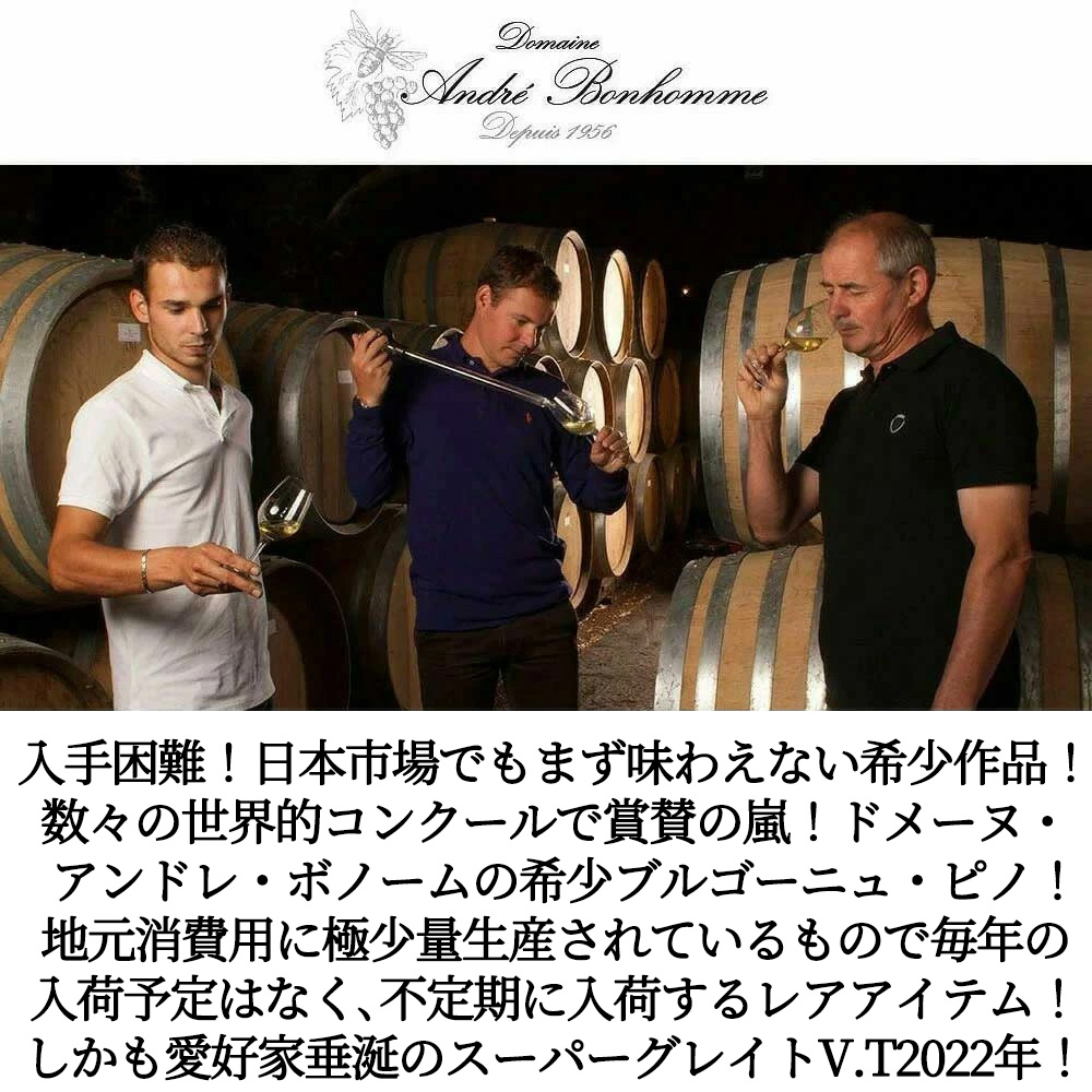 【商品名】ブルゴーニュ・ピノ・ノワール・ヴィエイユ・ヴィーニュ[2022]年・蔵出し限定品・ドメーヌ・アンドレ・ボノーム元詰・AOCブルゴーニュ・ピノ・ノワール・正規品【英名】Bourgogne Pinot Noir Vieilles Vignes 2022 Domaine Andre Bonhomme AOC Bourgogne Pinot Noir