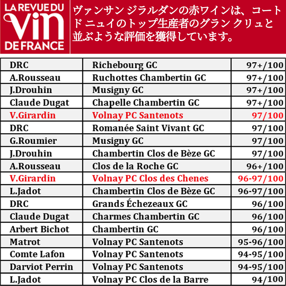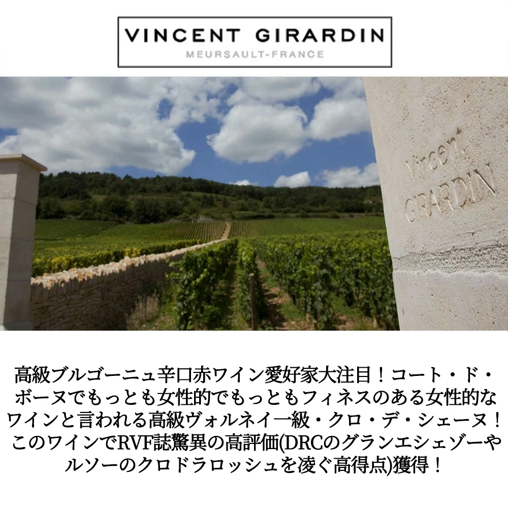 【商品名】ヴォルネイ・プルミエ・クリュ・一級・クロ・デ・シェーヌ[2022]年・ヴァンサン・ジラルダン・AOCヴォルネー・一級 (平均樹齢は驚異の60 年のVV&樽熟13 ヶ月)・RVF誌で驚異の96-97点(これはDRCのグランエシェゾーやルソーのクロドラロッシュを凌ぐ高得点)&ベタンヌ&ドゥソーヴ誌2025年版でも驚異の96点獲得!・ロウ封印キャップ【英名】Volnay Premier Cru Clos des Chenes 2022 Vincent Girardin AOC Volnay 1er Cru