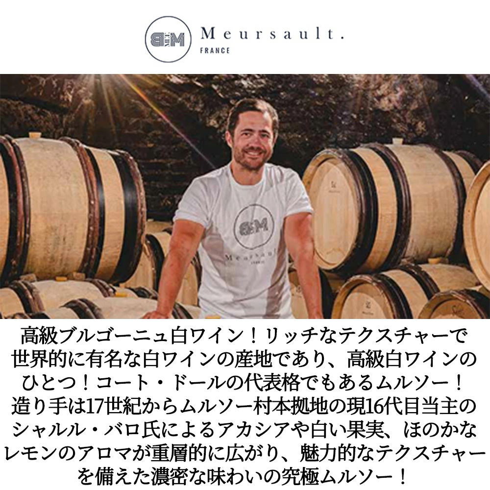 【商品名】ムルソー[2023]年・バロ・ミヨ元詰(16代目当主・シャルル・バロ家)・AOCムルソー・ブラン・ムルソー・レ・ペル畑、ショーム・デ・ナルヴォー畑、レ・コルバン畑、レ・プート・ヴィーニュ畑の有機栽培の樹齢30年VVのシャルドネ種100%・天然酵母100%・マロ発酵&オーク樽100%で12ヶ月熟成・アランメドゥ驚異89-92点(Outstanding Top value評価)獲得・13.5%・ロウ封印キャップ