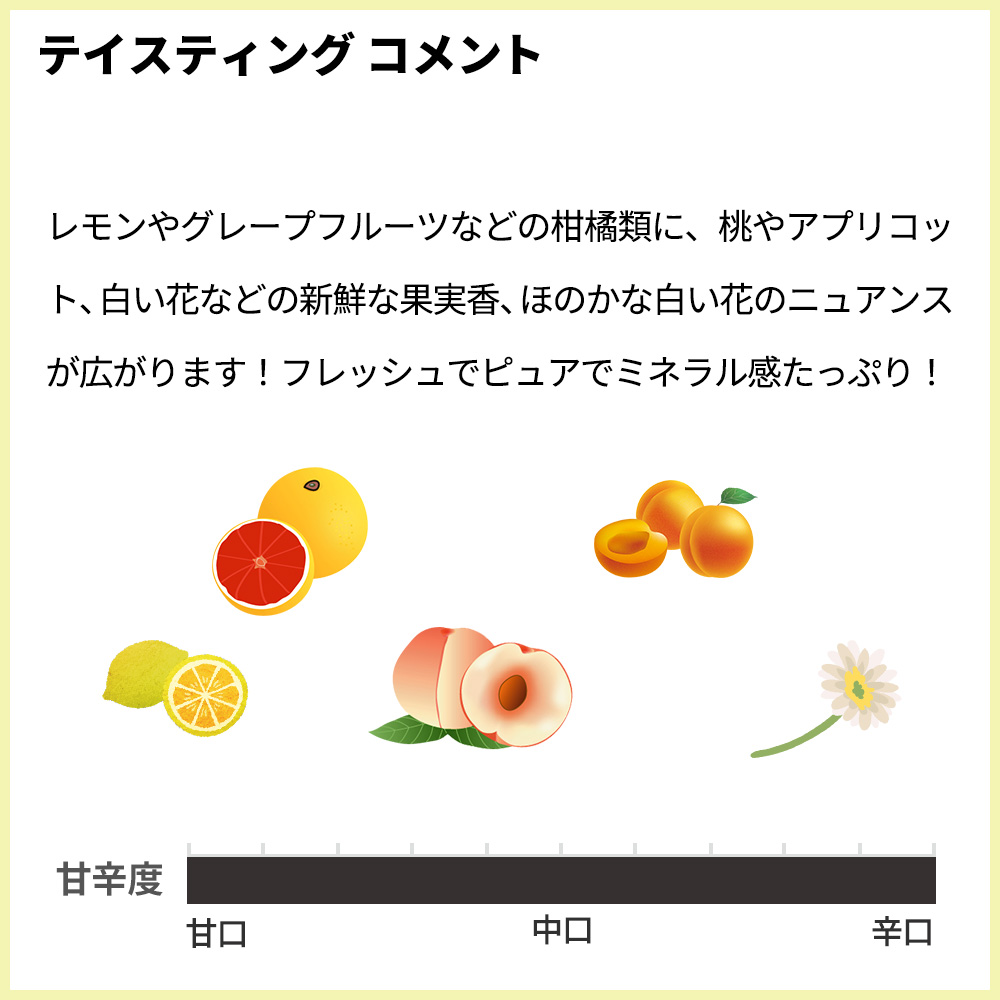【商品説明】大人気ブルゴーニュ辛口白ワイン愛好家大注目!レストラン様からのリピート多数の大人気辛口白ワイン!マコン地区のワンランク上 (上位) のAOC!マコン・ヴィラージュAOCから大人気シャルドネ100%!各ワイン誌絶賛!しかもブルゴーニュ委員会による評価は『ワインは良質で、凝縮感とバランスに優れている。極端な暑さに見舞われた年であったというのに、新鮮な果実のアロマと躍動感が明るい未来を感じさせる、驚くべきヴィンテージとなった。白ワインは、その丸み、滑らかさ、そして複雑さで際立っている。リッチで非常に表情豊か、果実のアロマが過度にならずに存在感を示している。味わいでは、みずみずしい果実味とバランスの良さが生き生きと持続する。』と大絶賛! アシェット・ガイド誌2024年版でも18/20点を付けるスーパーグレイトヴィンテージ[2023]年もので遂に少量入荷!ワイン評論家のヒュー・ジョンソン氏は「上位のマコンワインの包括名称!マコン・リュニ、ラ・ロッシュ、ヴィーヌズなど村名自体を使うこともある」と絶賛し、★★-★★★3つ星!上質な生産者8社のひとつにこのカーヴ・ド・リュニーを挙げています!また、ブルゴーニュワイン評論家の大御所M.Wのセレナサトクリフ女史に「賢明な数少ない協同組合のひとつ!白の品揃えはとても上手に造られていて、シャルドネの純粋なリンゴとメロンの風味が際立っている」とこれまた絶賛! 造り手はサザビーズのシニア・ディレクターでブルゴーニュワイン評論家の大御所!M.W.のセレナ・サトクリフ女史も大注目!ワイン評論家のヒュー・ジョンソン氏も「ポケットワインブック」で大注目!造り手は1927年設立サン・ジョングー・ド・シセやシャルドネの協同組合を吸収し、マコン地区では指折りの生産組合(なんとマコン地区の30%(ブルゴーニュ総生産量の6%)を占める生産量を誇る協同組合)しかもアメリカとイギリスでは、30年以上に渡り、絶大な人気を誇るカーヴ・ド・リュニー!ずばり浅く石灰質、粘土質土壌のカーヴ・ド・リュニーの畑で育てられた樹齢30年以上の厳選シャルドネ100%(サステナブル農法)をステンレスタンク(MLF有)、ステンレスタンク熟成で造られる極旨辛口白ワイン! レモンやグレープフルーツなどの柑橘類に、桃やアプリコット、白い花などの新鮮な果実香、ほのかな白い花のニュアンスが広がります!フレッシュでピュアでミネラル感たっぷり!シャルドネ本来の透明感とミネラル感が素直に感じられ、さわやかな酸とともに優しいきれいな口当たりの究極辛口白ワイン!大人気マコン・ヴィラージュ・ブランがグレイトヴィンテージ2023年で遂に待望入荷!