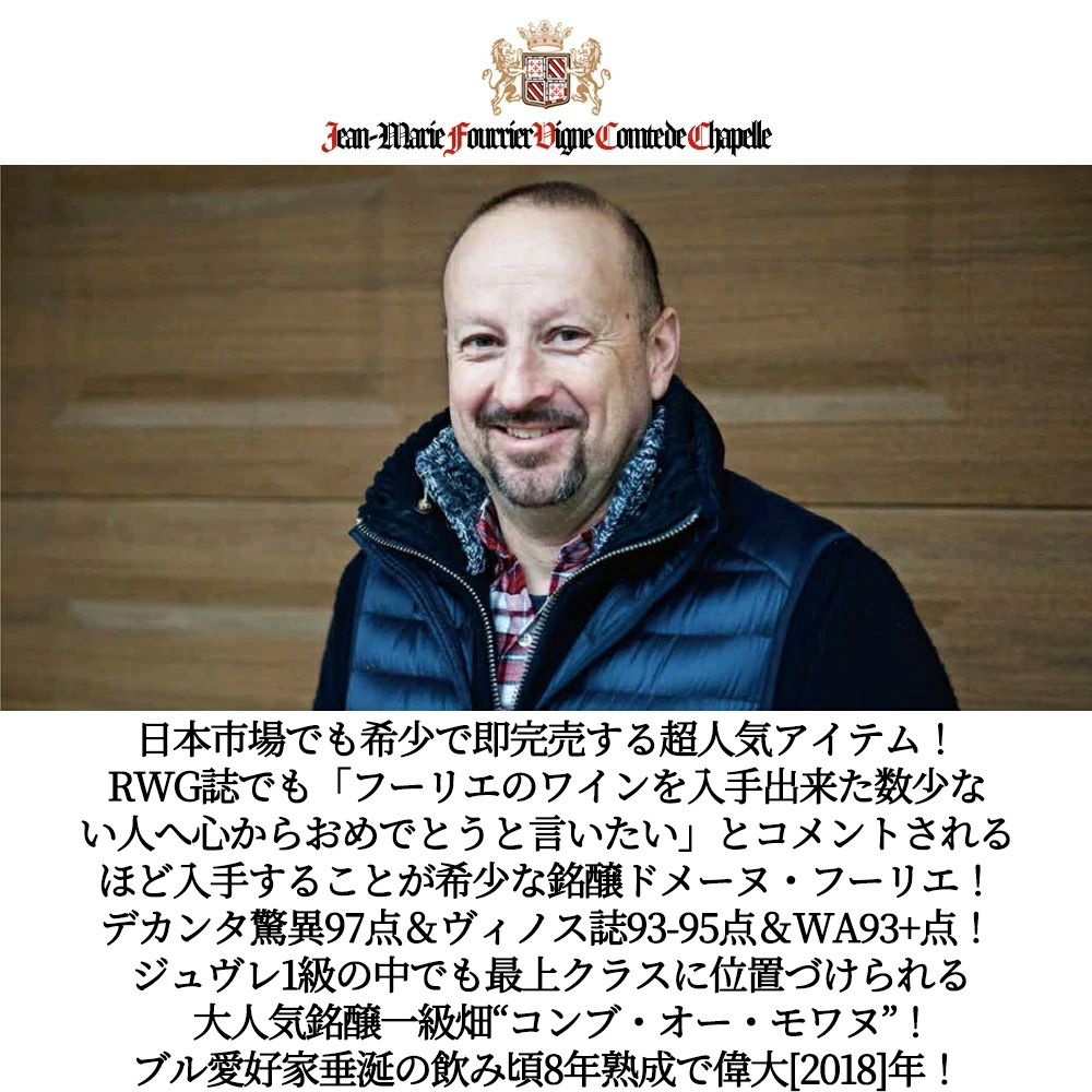【商品名】ジュヴレ・シャンベルタン・プルミエ・クリュ・一級“ラ・コンブ・オー・モワンヌ”ヴィエイユ・ヴィーニュ[2018]年・ドメーヌ・フーリエ元詰・(ジャン・マリー・フーリエ)・蔵出し品・AOCジュヴレ・シャンベルタン・プルミエ・クリュ・正規代理店輸入品・デカンタ驚異の97点&ヴィノス誌93-95点&ワインアドヴォケイト93+点&バーガウンド91-93点・ロウ封印キャップ【英名】Gevrey Chambertin 1er Cru La Combe Aux Moines Vieilles Vignes 2018 Domaine Fourrier AOC Gevrey Chambertin 1er Cru