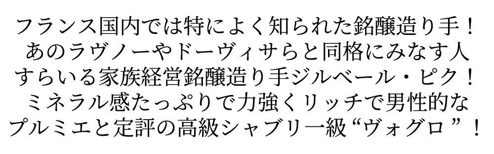 シャブリ プルミエ クリュ 一級 ヴォグロ 2020 蔵出し品 ドメーヌ ジルベール ピク家元詰 AOCシャブリ プルミエ クリュ 一級