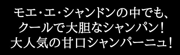 ![]() シャンパーニュ モエ・エ・シャンドン ネクター アンペリアルネクター アンペリアルは、もっとも大胆で最も意外性のあるシャンパンです。3種類のシャンパンの葡萄品種が持つ多様性と相補性、また、地区最高の畑の豊穣さを反映し、世界でもっとも愛されるシャンパンの魔法をときあかします。快活にして寛大なネクター アンペリアルは、トロピカルなフルーティーさとリッチな味わいの後に、くっきりとした後味を残し、瞬時に驚きと喜びをもたらし、独自性を発揮するようなシャンパンです。ネクター アンベリアルのアサンブラージュは、ピノ・ノワール種(40-50%)が骨子をつくり、ピノ・ムニエル種(30-40%)がフルーティな厚み、シャルドネ種(10-20%)でフレッシュさを加えた構成となっています。厳選されたリザーブワインを20-30%使用することにより、アサンブラージュが完成され、強く集約された濃厚さや密度が高まります。金色をおびた黄色。 寛大で濃厚なトロピカルフルーツ(パイナップル、マンゴ)と砂糖がけドライフルーツ(ミラベルプラムとアプリコット)の香りに、穀類(モルト)と甘いスパイス(シナモン、バニラ)のニュアンスが香りとしてかぶさってきます。 濃厚でありエレガント、非常にクリーミーな中にグレープフルーツのはじけるフレッシュさの混ぜ合わさった、滋味に富む味わいです。6℃くらいの少し低めの温度で飲むことをお薦めします。 |