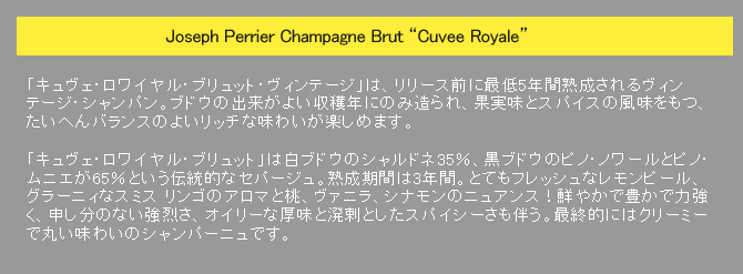 | ■ワイン名 | ジョセフ・ペリエ・シャンパーニュ ブリュット “キュヴェ・ロワイヤル” |