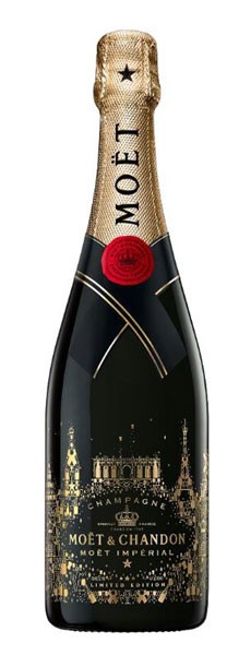 世界で最も愛されているシャンパン! モエ・エ・シャンドン! モエ・エ・シャンドンに縁の深い ボトル、グラス、王冠、ボトルネックのタイ、 コルク等のモチーフを使い、 フランスのランドマークを描いた 2018年のリミテッドエディション | ||||||||||||||
