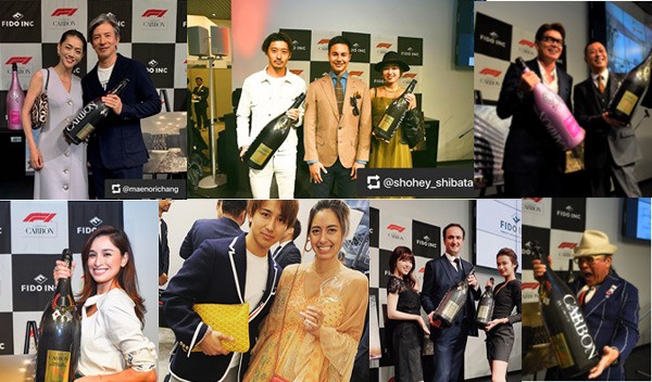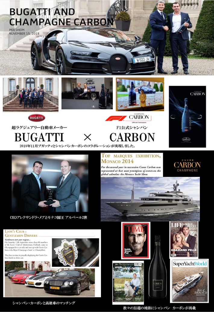 ![]() モータースポーツF1の公式シャンパーニュにシャンパン・カーボンが採用されたことをF1商業活動マネージング・ディレクターのショーン・ブラッチズが7月30日に正式発表。2017年シーズンのモナコGPからシャンパン・カーボンが表彰台のシャンパン・ファイトで振りまかれています。 ![]() Carbon Party in Aoyama Porsche Center FIDO×CARBON レセプションパーティを行いました。シングル層向けコンパクトマンション「FIDO」とF1公式シャンパン「CARBON」がコラボレーションして憧れの車に乗れる、憧れのシャンパンを飲める“上質なくらし”を提案したマンション“日本初”のカーシェアリングサービス付きレジデンスを記念して青山ポルシェセンターにてパーティーを行いました。多くの芸能人の方々もお祝いに駆けつけていただき華やかなパーティーとなりました。 ![]() 2015年にはオランダ、オートクチュールショーで高級時計、高級車を押しのけシャンパン・カーボンが紹介されました。 また、Cartier ジュエリーがシャンパン・カーボンに訪問した際の感謝状には「あなたがたは素晴らしい、我々のシャンパンオーダーを受けてもらってありがとう!」と書かれています |