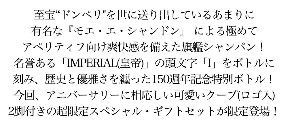 モエ エ シャンドン ブリュット アンペリアル 150年アニバーサリー 限定ボトル&限定クープ2脚付きセット 正規品 専用箱入り