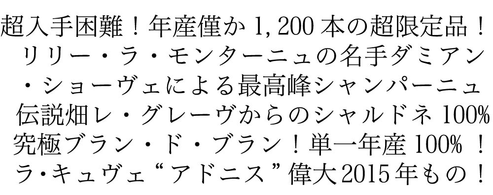 アンリ ショーヴェ シャンパーニュ ラ キュヴェ アドニス ミレジム 2015 プルミエ クリュ 一級 ブラン ド ブラン 正規品