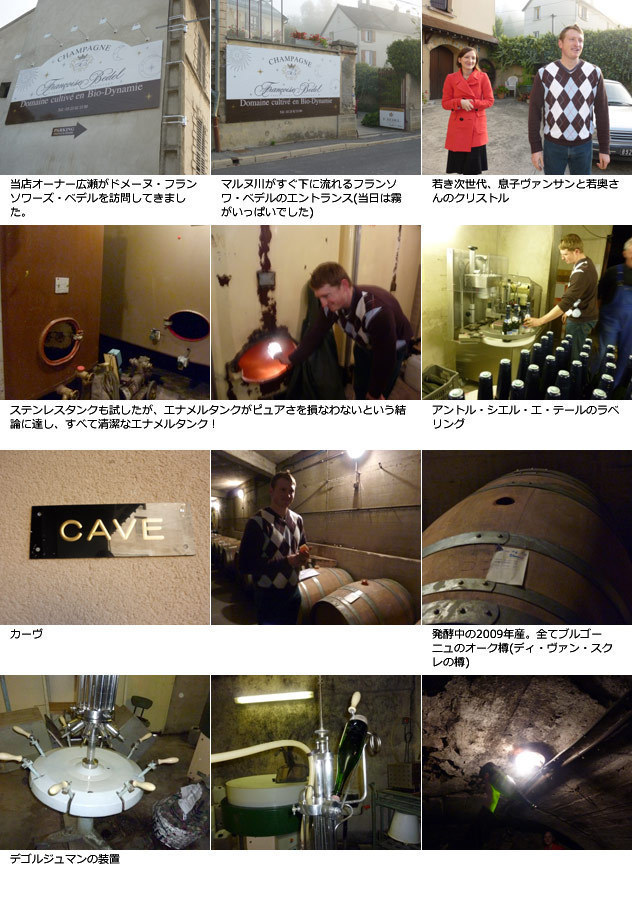 ![]() ツィント・ユンブレヒトやシャトー・ド・モンテリーでのビオディナミ修行を終えた息子ヴァンサン・デゾヴォーへの世代交代が近づくベデル。真のビオディナミストとして驚異的なまでに畑に手を尽くす彼らこそ“求道者”の名にふさわしく、その結晶たる彼らのシャンパンは、魂がしびれるほどの感動作であります。 ![]() ルロワ女史やルフレーヴ女史と日々情報交換しているフランソワーズは、彼女たちの主催する「BIODYNVIN」のシャンパーニュ唯一の加盟メンバー。地球全体を生命として捉え、あらゆる生命体を癒すためのワイン造りを実践しています。 にわかブームとしての“自然派ワイン”とはまったく異なります。 ![]() 1998年までの8年間に及ぶ試行錯誤を経て、ついにすべてが花開いた1999。ベデルの本当の凄さはここからです。 フランソワーズ・ベデルがもともとビオディナミをはじめたきっかけは、息子ヴァンサンの病気でした。現代的な薬はまったく効かず深く悩み続けた末、最後に出会ったホメオパシー(同毒療法)によって完治しました。「世界の見方が変わりました。それで、ぶどうにも同じことがいえるのではないかと考えるようになり、やがてビオディナミに出会いました」。そのヴァンサンもツィント・ユンブレヒトやシャトー・ド・モンテリーでのビオディナミ修行を終え、今日母と力を合わせてシャンパン造りに情熱を注いでいます。 |