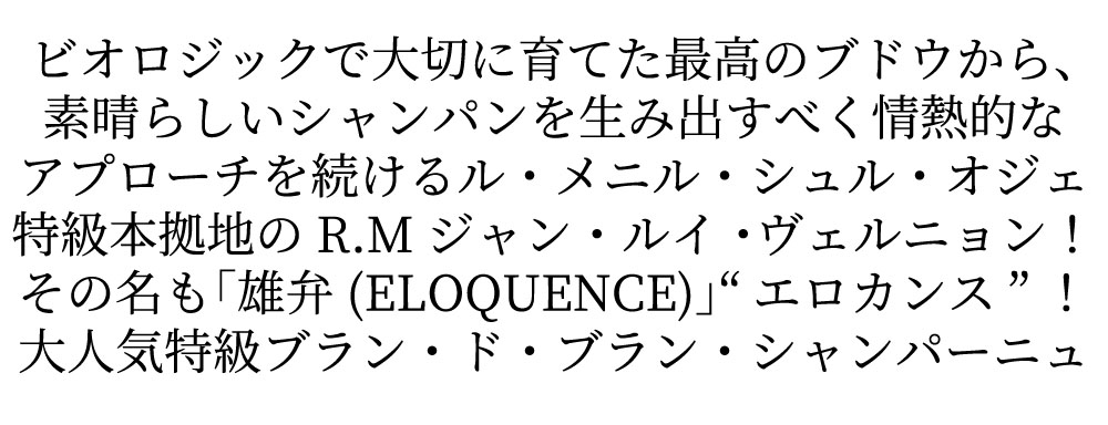 ジャン ルイ ヴェルニョン シャンパーニュ エロケンス エクストラ ブリュット GC ブラン ド ブラン J L ヴェルニョン家元詰 AOCシャンパーニュ自然派 ビオロジック ドサージュ3g/L