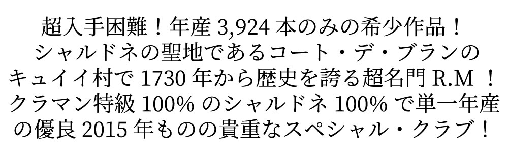 ![]() 【専用箱付】ピエール ジモネ シャンパーニュ スペシャル クラブ クラマン グラン クリュ エクストラ ブリュット ミレジム 2015 ■ぶどう品種:シャルドネ100% ■ビン熟成:瓶熟48ヶ月以上 ■ドサージュ:4g/L 大人気R.M.シャンパーニュの希少スペシャルクラブ! スペシャル・クラブとは、有力なR.M生産者が加盟するClub Tresors de Champagne(クラブ・トレゾール・ド・シャンパーニュ)で、それぞれの土地の個性を表現し、優れた年のヴィンテージ・シャンパーニュのみを対象に、最低3年以上の瓶熟成を義務づけ、瓶詰め前と発売前に委員会とエノロジストによる試飲検査に合格したもののみ、販売が認められ、重厚感ある特別ボトル・エチケットにて統一されて売り出されるシャンパンがスペシャル・クラブ! ドサージュもすべて自社畑のブドウからの果汁100%!で造られる非常に入手困難な究極“スペシャル・クラブ”クラマン特級・エクストラ・ブリュットが限定で極少量入荷! |