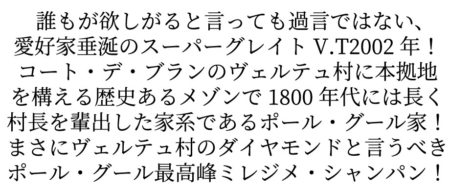 ポール グール シャンパーニュ プルミエ クリュ ヴィンテージ 2002 ブラン ド ブラン ブリュット 自然派 ヴァンナチュール リュット レゾネ