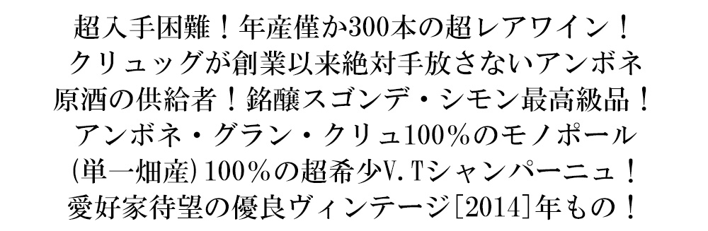 スゴンデ シモン キュヴェ モノポール畑 ル ヴィラージュ グラン クリュ 特級 2014 RM生産者元詰 AOCシャンパーニュ 正規品 750ml