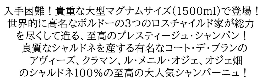 【大型マグナムサイズ】シャンパーニュ バロン ド ロスチャイルド ブラン ド ブラン ブリュット 1500ml 1.5L AOCシャンパーニュ 正規品
