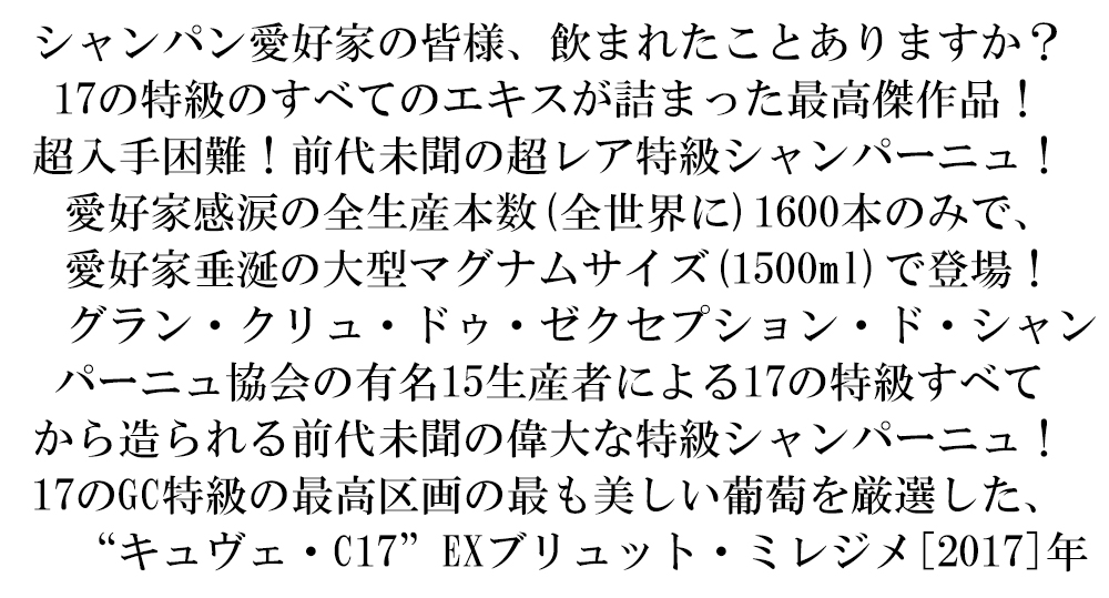 【大型マグナム 木箱入り】グランクリュ デクセプション ド シャンパーニュ グランクリュ特級 キュヴェC17 エクストラブリュット ミレジメ 2017