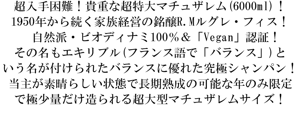 ルグレ エ フィス シャンパーニュ エキリブル エクストラ ブリュット 超大型マチュザレム サイズ ルグレ家 自然派【超特大ボトル 豪華木箱入】