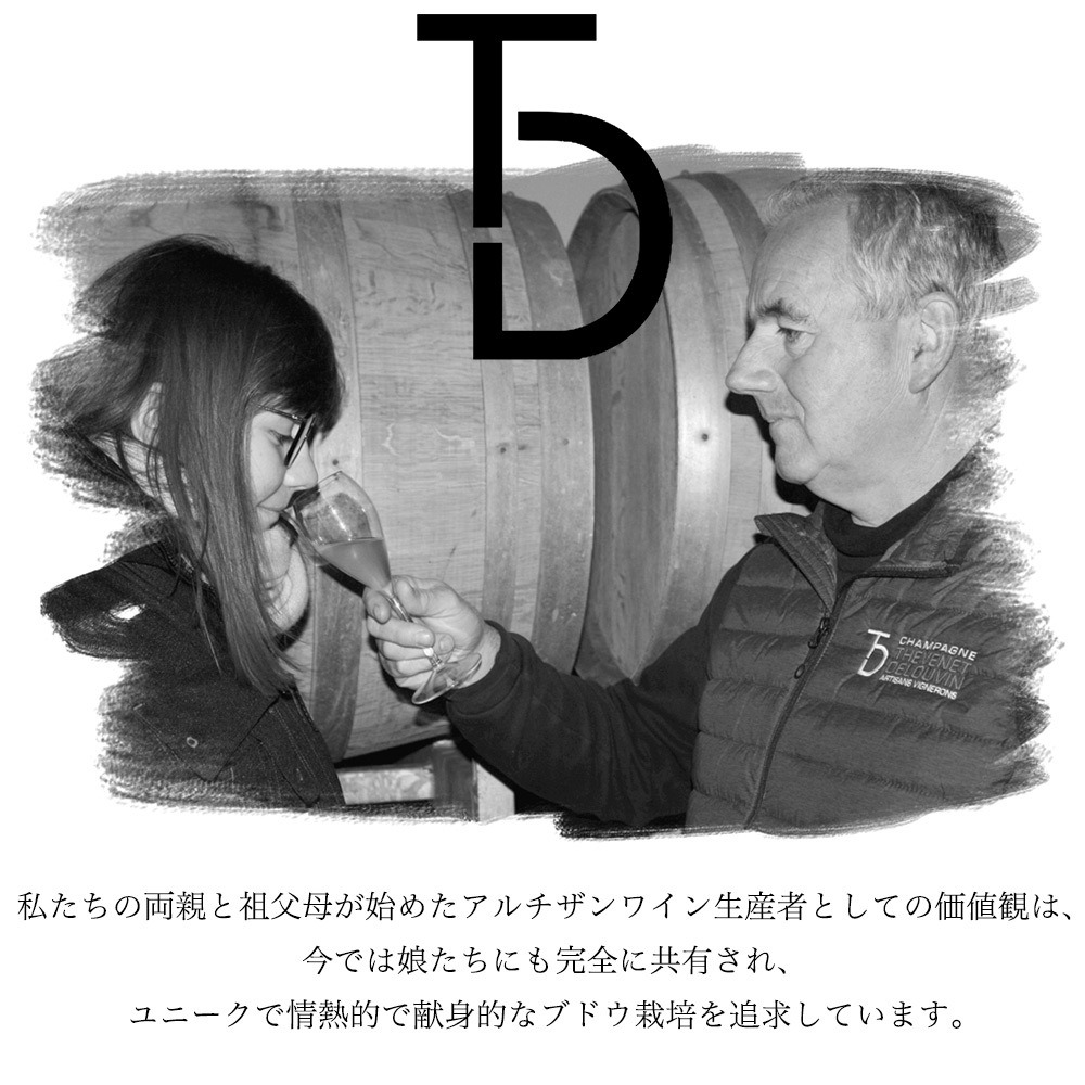![]() 「ヴァレ・ド・ラ・マルヌ」中部、パシー・グリニー村に19世紀後半から続くヴィニュロンの家系で、1960年にRMを設立し、2005年より5代目グザヴィエ・テヴネが運営しています。 このRMはシャンパーニュにおけるリュット・レゾネ栽培の草分けで、奥さんのイザベル・テヴネさんは、1991年に設立されたシャンパーニュ地方随一のリュット・レゾネ実践団体「マジステール」の設立メンバーのひとりです。他にも、「HVE(Haute Valeur Environnementale)」の最高段階「レベル3」や、「Viticulture Durable en Champagne」の認証を取得しています。 ![]() 「認証は、優秀な栽培家たちの実践から得られた知見や最新の研究成果に基づく、“栽培の極意”を規定したものです。「マジステール」の設立に関わったり、各種認証を取得して思うことは、同じリュット・レゾネ栽培でも認証を取得するのとしないのでは、畑の活性に大きな違いが生じるということです」(イザベル・テヴネ)。 ![]() 「ヴァレ・ド・ラ・マルヌ」の魂であるピノ・ムニエを核として、ピノ・ノワールとシャルドネを栽培しており、醸造の要所に228リットルの樽を使用するなどして、各品種の美質マトリックスを高次元で顕在化させた作品群を展開しています。 フィロソフィーは、「本物のシャンパンを造る」こと。数えきれないほどのワインメディアからの激賞、華々しい受賞歴。美味し”すぎる”彼らの作品を飲むと、シャンパーニュには他の産地のワインが超えられない世界があることを、実感させられます。 | ![]() ■ぶどう品種:ピノ・ムニエ70%、ピノ・ノワール30% ■土壌:粘土石灰質・砂質土壌 ■平均樹齢:25~30年 ■熟成:ステンレスタンクで醸造!3年間ビン熟成! 入手困難!人気RMシャンパーニュ愛好家大注目!希少なドミ・セック!毎年世界の注目を集める、「ビュル・エ・ミレジム」誌主催「ヴィニュロン・オブ・ザ・イヤー2018」受賞RM・シャンパーニュ! しかもボランジェやヴーヴ・クリコをはじめ、多くのメゾンも欲しがる名門テヴネ・ドルーヴァンが遂に日本登場! 販売先は個人愛好家、ワインショップ、レストランで、残りをEU各国と日本に超限定入荷という非常に入手困難なこだわりRMシャンパーニュ! しかも今、料飲店様からもあっさり甘口のシャンパーニュのお問い合わせが増えています!デザート全般、フォワグラ、ブルーチーズ等と伴に!もちろん現地のセラー数か月前の蔵出し品で限定極少量入荷! |