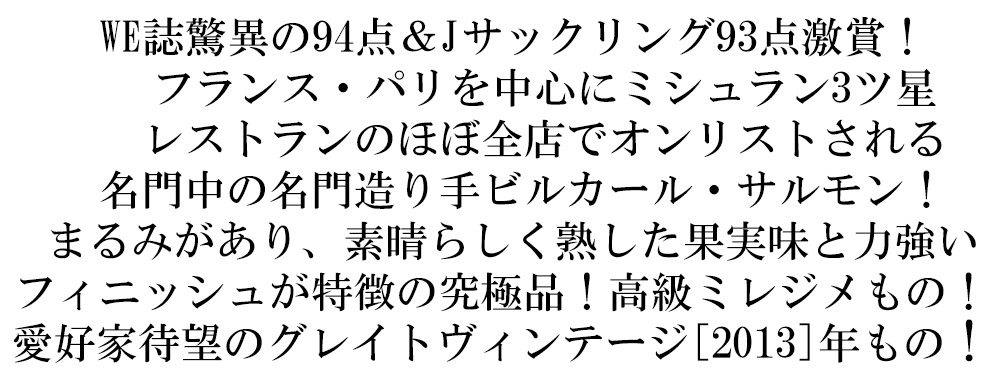 ビルカール サルモン シャンパーニュ ブリュット ヴィンテージ 2013 年 ビルカール サルモン AOCミレジム シャンパーニュ