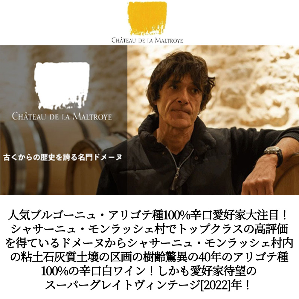 ブルゴーニュ アリゴテ 2022 蔵出限定作品 シャトー ド ラ マルトロワ元詰 自然派 アリゴテ種100%(ベタンヌ&ドゥソーヴ2020年版3つ星) Bourgogne Aligote 2022 Chateau de la Maltroye