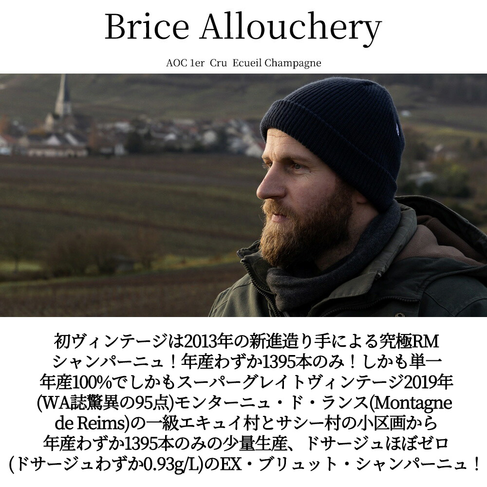 【商品名】ブリス・アルーシュリー・シャンパーニュ・プルミエ・クリュ・一級・(エキュイ&サシー)・“レ・サブロン”・ミレジメ[2019]年・エクストラ・ブリュット・生産者元詰・RM (3代目ブリス・アルーシュリー家)・オーク樽で発酵後、500L樽で10ヶ月熟成、瓶熟36ヶ月・(ドサージュわずか0.93g/L)・(ティラージュ2020年7月・デゴルジュ2023年12月)・年産1395本のみ【英名】Brice Allouchery Les Sablons Brice Allouchery Champagne 1er Cru Ecueil&Sacy Lieu-dit- Hauts Bourgeois Millesime 2019 Pinots Noirs100% Extra Brut RM AOC 1er Cru Ecueil Champagne