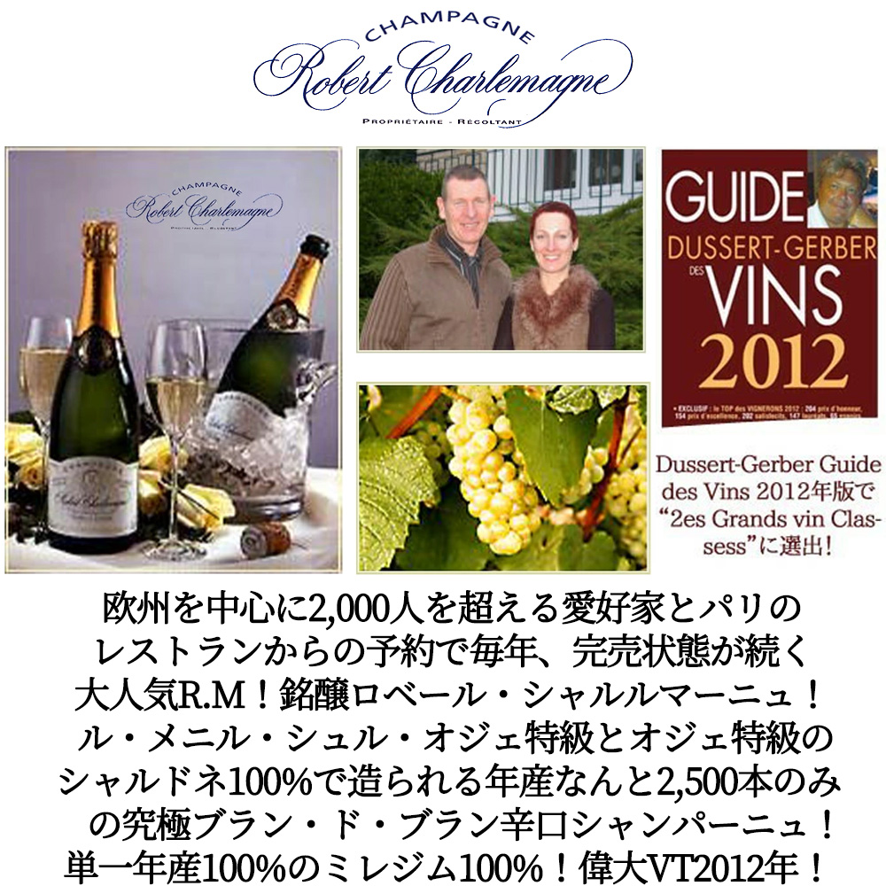 ロベール シャルルマーニュ シャンパーニュ グラン クリュ 特級 ミレジメ 2012 蔵出し限定輸入品 R.M (ディディエ ドラヴィエ家) 元詰<br>Robert Charlemagne Champagne Grand cru Millesime 2012