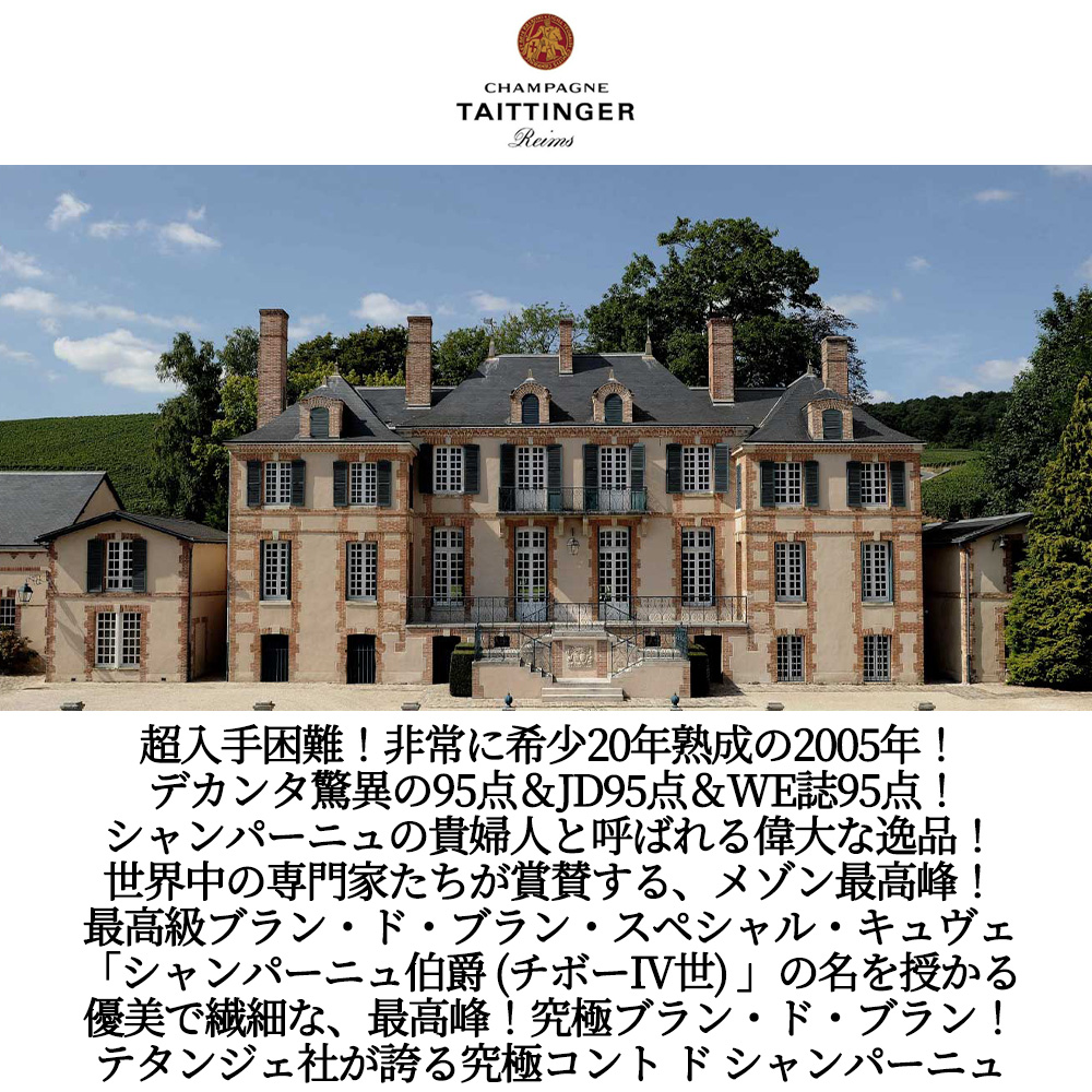 テタンジェ コント ド シャンパーニュ ブリュット ミレジム 2005 ブラン ド ブラン AOCミレジメ シャンパーニュ デカンタ驚異の95点 TAITTINGER Comtes de Champagne Millesime 2005
