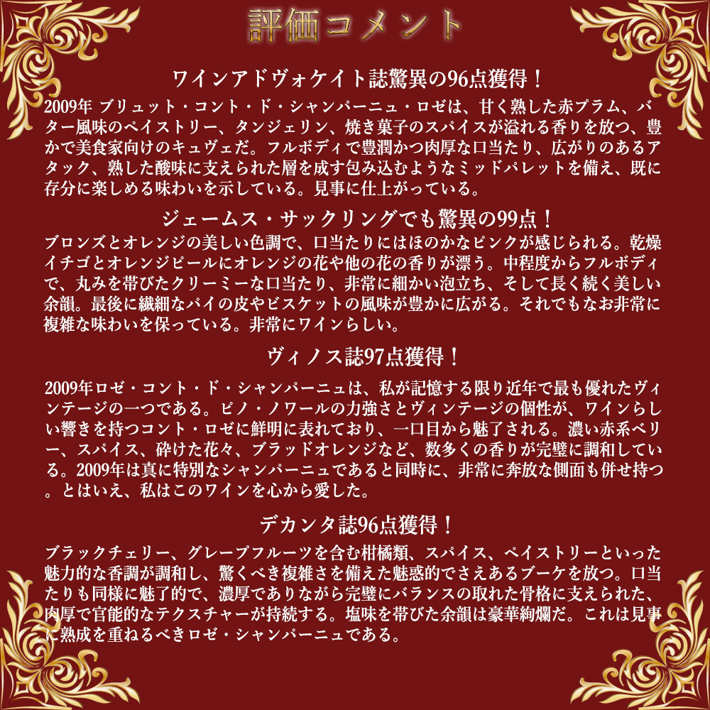 【商品名】【豪華箱入】テタンジェ・コント・ド・シャンパーニュ・ロゼ・ブリュット・ミレジム[2009]年・豪華ギフト箱入り・正規代理店輸入品・AOCミレジム・シャンパーニュ・正規品・ジェームス・サックリング驚異の99点&ヴィノス誌97点&デカンタ誌96点&ワインアドヴォケイト誌96点【英名】TAITTINGER Comtes de Champagne Brut Rose Millesime 2009 DX Gift Box AOC Millesime Champagne