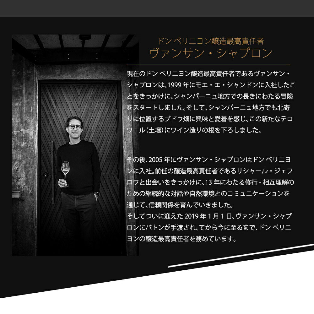 【商品説明】高級シャンパーニュ辛口愛好家大注目!あまりに有名!あの最高級シャンパーニュ「ドン・ペリニョン[2015]年」×「村上隆」の限定エディション・EOY25が超限定で待望入荷!“ドン・ペリニヨン×村上隆”!伝統と革新の融合!村上隆氏の作品世界を象徴するアイコンである「花」をモチーフとしたデザインが採用され、ドン・ぺリニヨンのシールド(ラベル)に伝統的に描かれてきたブドウ畑の意匠が、幻想的な花の風景に置き換えられて漆黒のボトルとギフトボックスを美しく彩ります!「ドン・ペリニヨンとのコラボレーションを通じて、私はある種のタイムトラベルのような感覚を表現したかったのです。100年、200年先にも意味を持ち、時を超越する存在でありたいのです。ラベルが時を経て古び、私や子どもたちもこの世を去った後に未来の人々がそれを目にしたとき、彼らの心の中で2025年を再び思い描いてくれることを願っています」と語る村上隆氏! しかもグレイトヴィンテージ[2015]年もの (アシェットガイド誌2024年版ではシャンパーニュに17/20点のグレイトヴィンテージ評価 (これは伝説の1985年や1966年、1970年、2002年と同評価) !WAでは驚異の93点のグレイトヴィンテージ) ! ドン・ペリの最高醸造責任者ヴァンサン・シャプロン氏に「気象に大きな振れ幅のあった年に生まれたドン ペリニヨン ヴィンテージ 2015は、安らぎを感じさせる力強さと、口に含んだときの印象的なテクスチャーが特徴です。ほの暗く謎めいた印象に始まり、唯一無二のテクスチャーを感じさせる触感へと続く、特別な感覚の体験をもたらすヴィンテージ。」とコメント!この2015年について「2015年は気象の振れ幅が大きく、ワインづくりに恵みをもたらした年でした。春は気温が低く、その後に訪れた暑く乾いた夏は8月末まで長く続くという気温差が生じました。収穫は、燦々と降り注ぐ太陽の下、9月7日に始まりました。ブドウの木は健やかで完璧な状態にあり、豊かでこの上ない調和を湛える果実に恵まれました。芳醇な香りが際立つこのヴィンテージには、2015年ならではの特徴が表れています。水平に広く真っ直ぐにのびるような印象の骨格を備え、光り輝くような端正さを湛えます。口に含むたびに口中いっぱいに広がり、直線的に描き出される澄み切った味わいの余韻が続きます。こうした構築的な立体感は、触覚を大切にするドン ペリニヨンの真骨頂といえます。ワインを味わう時空には、製造された時空が映し出されます。舌触りが醸し出すこうした奥行きなくして、その味が完璧に表現されることはありません。」と絶賛! 17世紀の終わりにドン・ピエール・ペリニヨン神父が抱いた崇高な野望に忠実に、シェフ・ド・カーヴ (醸造最高責任者) であるヴァンサン・シャプロンも傑出したシャンパン造りにこだわり続け、この2015年は約9年間セラーで過ごし、最高のコクと深みの極みでついに登場しました! この[2015]年にワインアドヴォケイト誌驚異の95点高評価で「2015年のドン・ペリニヨンは、白胡椒、ヨード、熟した果樹園の果実、トースト、スモーク、ハーブ、スパイスのアロマを持ち、独特でエスプリの効いたプロフィールを示す。ミディアムからフルボディで、層があり、骨格があり、包み込むようなまろやかさがあり、デリケートなフェノリックなミッドパレットがチョーキーでドライなエキスを強調し、最後は美食的な苦味を伴う、樹液のように浸透したフィニッシュで締めくくられる。このドン・ペリニヨンの反復は、このラベルを代表する慣習的な魅力と葡萄の寛大さに満ちているが、構造的な繊細な渋みと際立ったフェノールのプロフィールによって区別され、ドン・ペリニヨンのより馴染み深い表現とは著しく異なる、驚くほど直線的で明確なスタイルを生み出している。ピノ・ノワール51%、シャルドネ49%のブレンドで、ドザージュは1リットルあたり4.5グラム。」! ワインスペクテーター驚異96点でコメントは「グレイズド・アップル、マンダリンオレンジの皮、ピンクグレープフルーツの果皮、クレーム・ド・カシスのフレーバーには、よくスパイスの効いたピリッとしたエッジがあり、それらはこのフレッシュで集中力のあるシャンパーニュのきめ細かいムースに乗っている。カヌレ菓子、刻んだアーモンド、ペストリークリーム、スモーク、バニラのノートがこの生き生きとした味わいを豊かにし、中盤から前面に出てきて、持続性のあるフィニッシュへと続く。2035年まで飲める。」! ヴィノス誌96点でコメントは「2015年のドン・ペリニヨンは素晴らしい。明るく落ち着いた2015年は素晴らしいエネルギーを示している。柑橘類の皮、白い花、ミント、白胡椒、粘板岩が口中を駆け巡る。華やかな緊張感と骨格があり、明るい塩のニュアンスが中盤からフィニッシュにかけて広がる。トリッキーであることが証明されたヴィンテージにおいて、これは素晴らしい出来栄えだ。2015年が今後どのように発展していくの