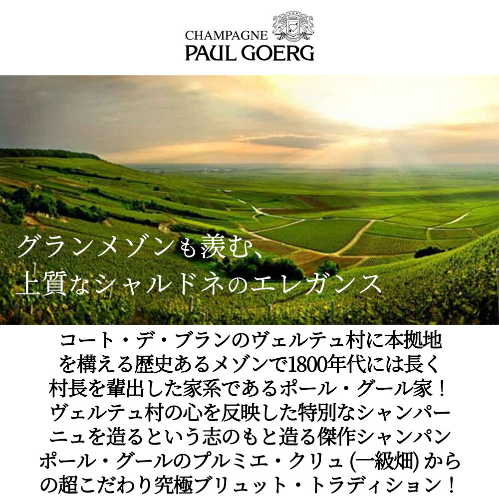 ポール グール シャンパーニュ ブリュット トラディション プルミエ クリュ NV AOCプルミエ クリュ シャンパーニュ 高級泡 白 Paul Goerg Brut Tradition Premier Cru NV AOC Champagne