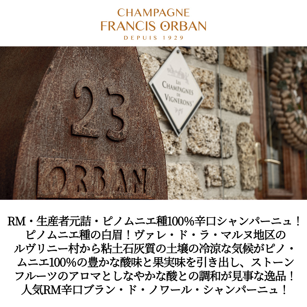 フランシス オルバン シャンパーニュ キュヴェ ブリュット レゼルヴ ヴィエイユ ヴィーニュ ムニエ(ブランドノワール) NV 生産者元詰 RM FRANCIS ORBAN CHAMPAGNE CUVEE BRUT RESERVE V.V. MEUNIER