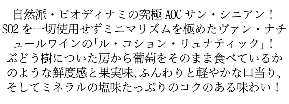 ル コション リュナティック 2020 蔵出し ラニー バラック ヴィティファーム元詰 AOPサン シニアン 自然派 無清澄