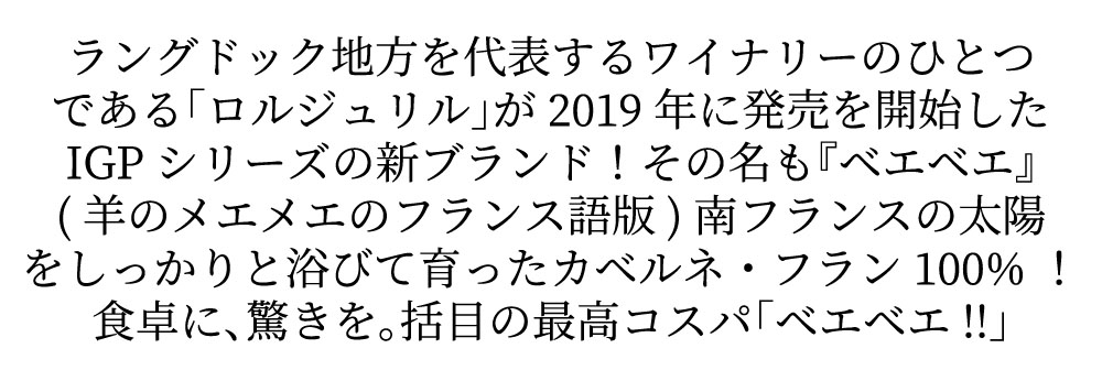 ベエベエ カベルネ フラン 2020 ニコラ ロルジュリル家 カベルネ フラン種100% IGPペイ ドック 醸造家ベルナール デュラン 赤 辛口