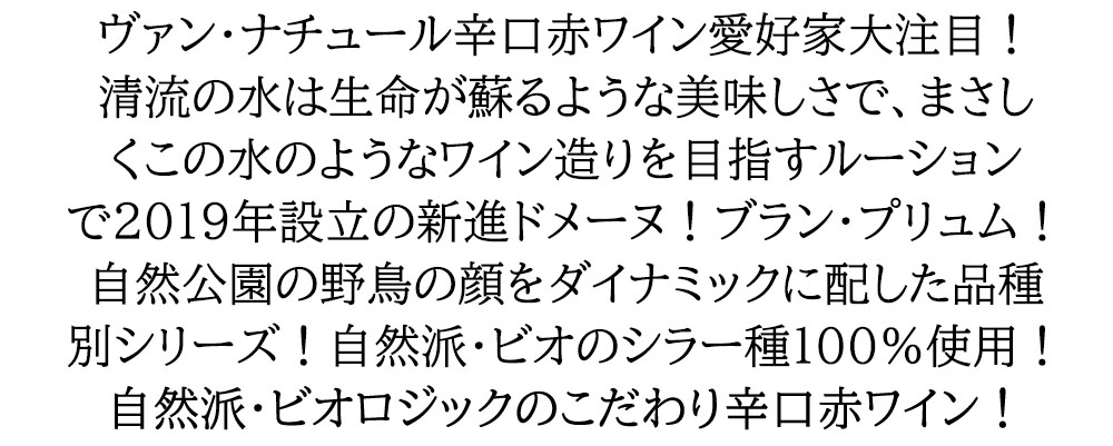 ピック ノワール シラー 2020 ドメーヌ ブラン プリュム元詰 白い羽 IGTコート カタラン 自然派 ビオディナミ ヴァン ナチュール