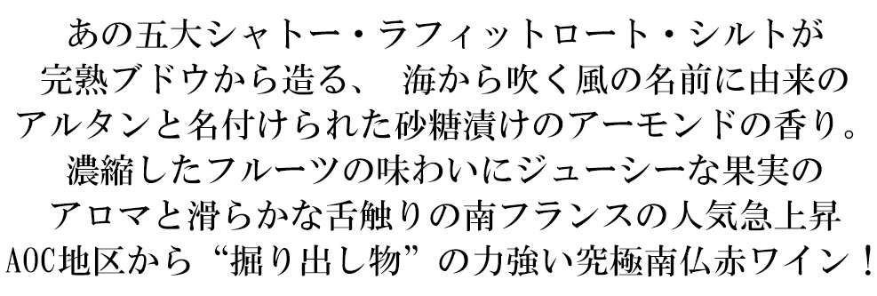 【商品名】アルタン ド オーシエール 2021 蔵出し作品 ドメーヌ ド オーシエール元詰 シャトー ラフィット ロートシルト経営 自然派 14% フルボディ