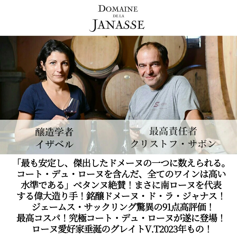 【商品名】コート・デュ・ローヌ[2023]年・蔵出し品・大樽9ヶ月熟成・ドメーヌ・ド・ラ・ジャナス元詰・AOCコート・デュ・ローヌ・正規品・ジェームス・サックリング驚異の91点高評価【英名】Cotes du Rhone 2023 Domaine de la JANASSE AOC Cotes du Rhone