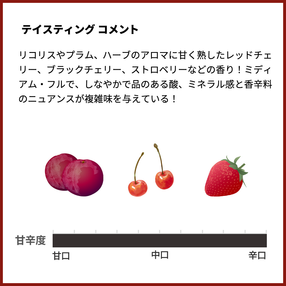 【ブドウの品種】グルナッシュ40%、ムール・ヴェードル20%、カリニャン20%、シラー15%、サンソー5%