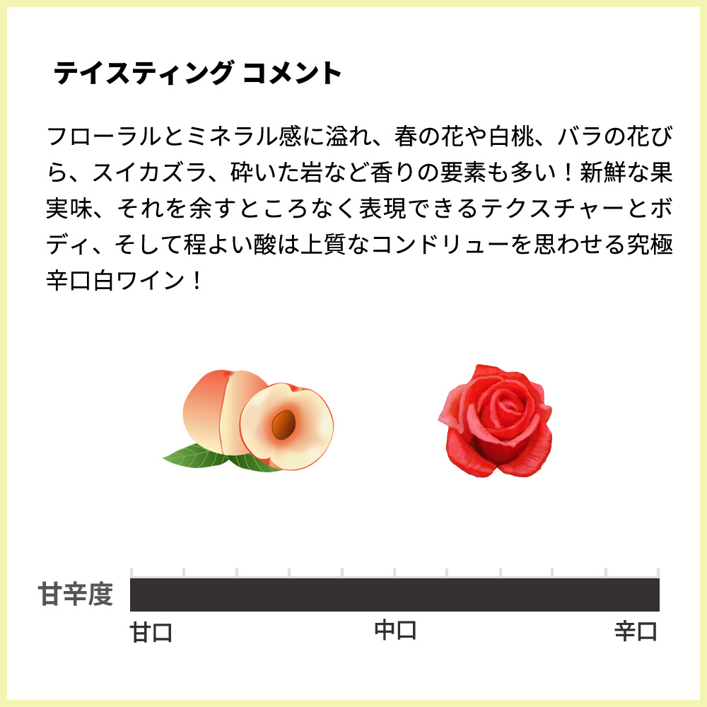 【商品説明】超入手困難!完全割り当ての希少作品!年産約5000本のみ!フランス高級ローヌ辛口白ワイン愛好家大注目!銘醸ジャナスのまさに“高級コンドリュー”というべき味わいの究極ヴィオニエ100%の希少辛口白ワインが限定で少量入荷! 14世紀、アヴィニョンにおかれた法王庁が、この地を夏の居住地に選んだことからシャトーヌフ・デュ・パプ (法王の新しい館) という村名になったという、赤ワインの産地としても有名ですが、少量生産ながら、良質のこの辛口白ワインも大人気!しかも造り手は南ローヌを代表する偉大な造り手!代々、葡萄を生産してきたサボン家が1973年より元詰めを始め、「ドメーヌ・ド・ラ・ジャナス」を設立!ぶどう栽培と醸造学の学位を持つクリストフ・サボン氏によって運営されています!彼らの所有するシャトーヌフの畑は分散しており、あらゆる土壌にまたがっています!それぞれの畑の管理は困難を極めますが、これこそがジャナスのワインに飛びぬけた複雑性を持つ素晴らしいワインにしている! 近年、評論家の高評価やメディアなどの影響もあり、爆発的に人気が高まっており、特にワインアドヴォケイト等では、上位キュヴェは毎年のように満点、もしくは満点に近い点数を獲得しており、年の出来に左右されない安定した彼らのワインは常にマーケットの熱い注目を浴び続けています!ロバート・パーカー氏に満点5つ星★★★★★生産者に挙げさせ、「ほぼ全てのワインが申し分なく高品質」と言わしめ、ベタンヌ&ドゥソーヴには★★★3B&Dマークで「最も安定し、傑出したドメーヌの一つに数えられる。コート・デュ・ローヌを含んだ、全てのワインは高い水準である」と大絶賛!ゴーミヨ誌では、6つ星生産者に挙げ絶賛!の究極ドメーヌ・ド・ラ・ジャナスから100%ヴィオニエ使用!澱に6ヶ月触れされる!新樽比率約25%! この「ヴィオニエ・プランシポテ・ドランジェ[2024]年」はフローラルとミネラル感に溢れ、春の花や白桃、バラの花びら、スイカズラ、砕いた岩など香りの要素も多い!新鮮な果実味、それを余すところなく表現できるテクスチャーとボディ、そして程よい酸は上質なコンドリューを思わせる究極辛口白ワイン!銘醸ジャナスのまさに“高級コンドリュー”というべき味わいの究極ヴィオニエ100%の超レアな希少辛口白ワインが限定で少量入荷!
