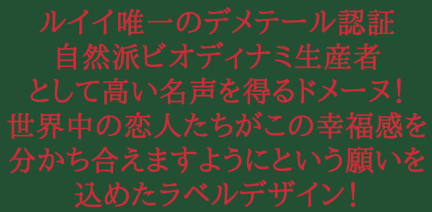 「教会で振る舞われる“愛のワイン”を提供していることもあって、私も毎年参加します。ワインを飲みながら楽しそうにしているカップルを見ていると、こちらまで幸せな気分になります。私のワインを通じて、世界中の恋人たちがこの幸福感を分かち合えますように、という願いを込めて、このラベルをデザインしました」。