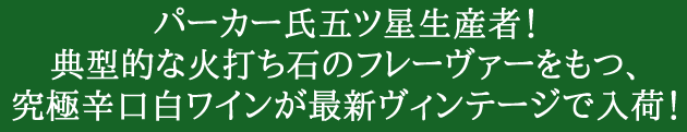 ![]() ダグノー家はペルティエの村に住み1830年からワイン造りをする家系で、セルジュ ダグノーは、二人の娘ヴァレリー('70年生まれ)とフロランス('69年生まれ)と共にワイン造りをしています。プイィの中で最も良いと言われるシレックス(いわゆる火打ち石の香り:ミネラルの風味をソーヴィニオン ブランにもたらす土壌)をもつサント・アンドラのエリアに畑を持っています。 ![]() 畑では1988年以来ビオディナミ農法で作業を行っています。除草剤は使わず定期的に耕すことで雑草を取り除き、化学肥料は使わず有機肥料のみ少量使用しています。 ![]() ロバートパーカー氏だけでなく「ラ ルヴェ デュ ヴァン ド フランス」でも四ツ星が付けられています。 ![]() プイイ・ヒュメについてヒュー・ジョンソン氏は、「銃の硝煙」ような匂いをもつ、フルーティで鋭いことの多い白。ロワール河上流のサンセールの近くの葡萄栽培地で産する。葡萄は必ずソーヴィニヨンを使う」として★★→★★★★4つ星 |