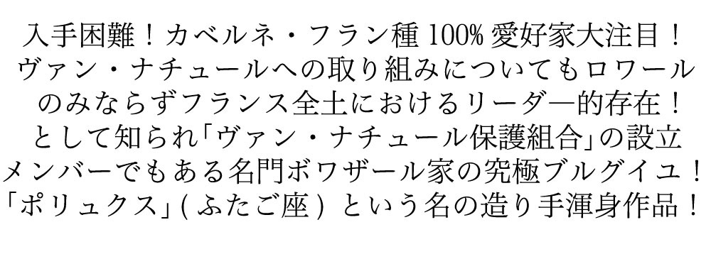 ブルグイユ ポリュクス 2020 メゾン ボワザール シリル&ファビアン ボワザール家 自然派 ビオロジック AOCブルグイユ